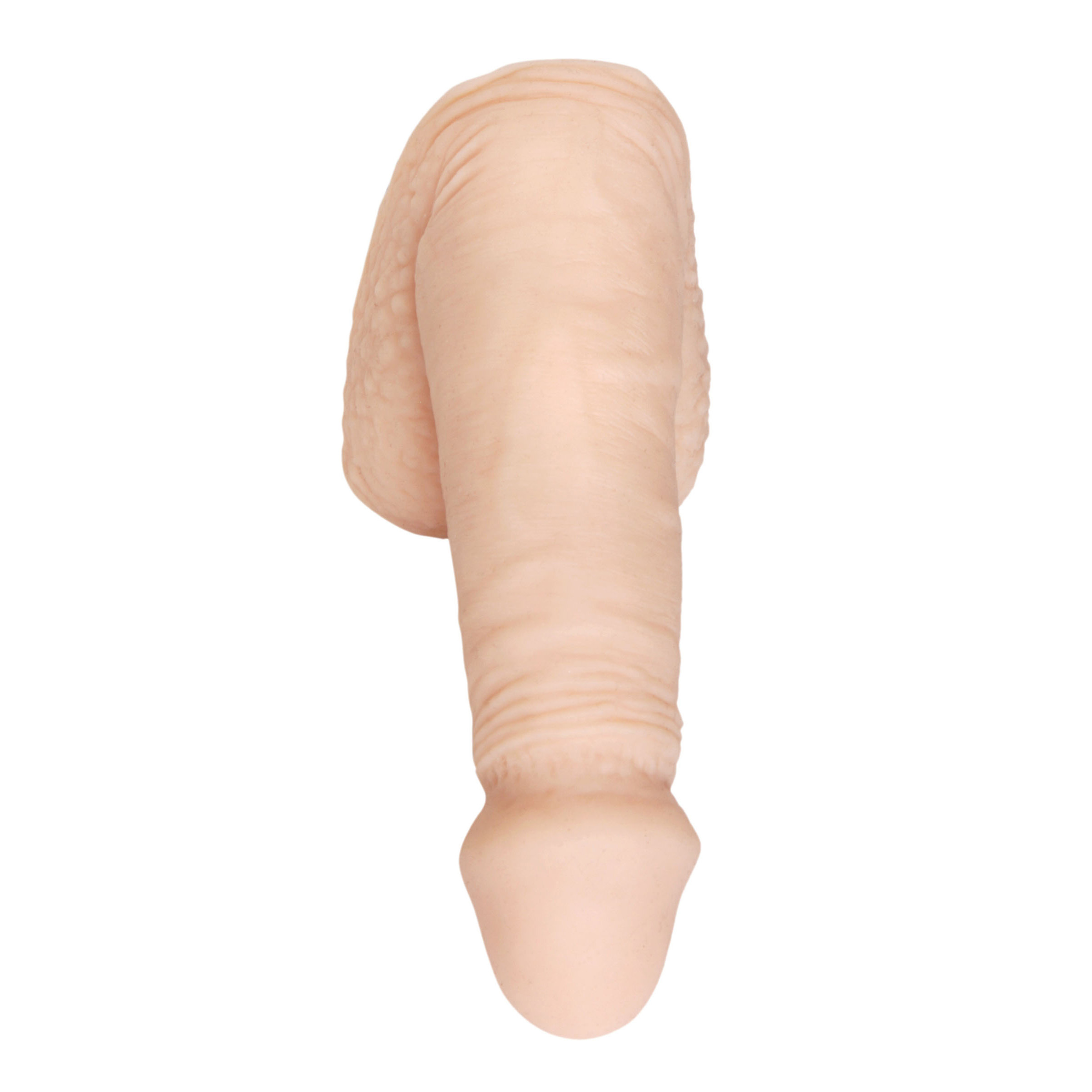 Put a banana in your hammock with this ultra realistic packer Now you can sport a fat bulge and show off your goods, with this soft, stretchy, realistically textured cock. It feels just like a flaccid penis, and looks so real that you will feel you were born with it. Use it in your favorite pair of packing briefs or jock, or in a strap on harness to keep it in place. It is soft and comfortable, designed to be worn all day. Maintenance free, just slip it into place for a boost of masculine power. Perfect for wearing under clothes, or changing at the gym. No matter how you use it, this great softie will make you feel like a king Measurements: 5.75 inches in total length, 5 inch shaft length, 1.5 inches in diameter. Material: TPR. Color: Flesh. Note: Briefs or harness not included