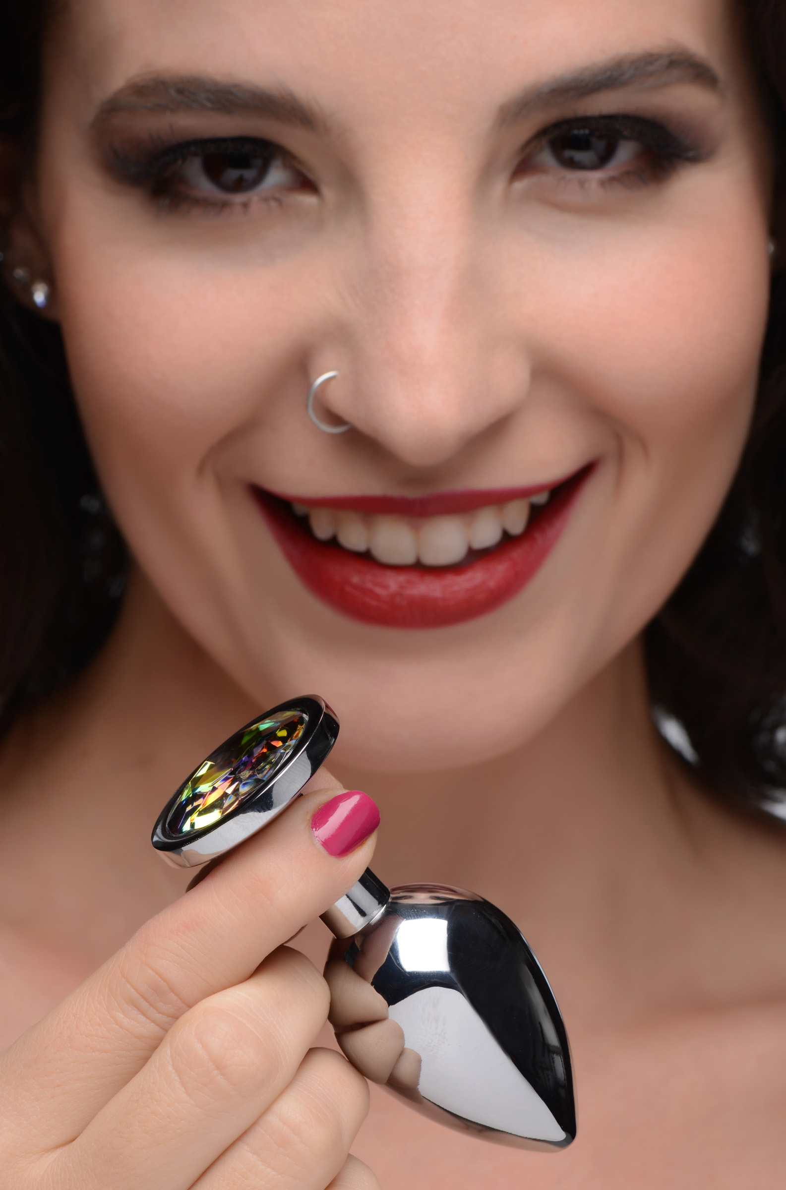 Adorn your derriere with this Rainbow Prism Gem butt plug! The rainbow gem adds dazzling lustful energy to your booty, while the medium size and satisfying weight qualify this brilliant butt plug as the main event for the night or a decent warm up for people more experienced with anal play.