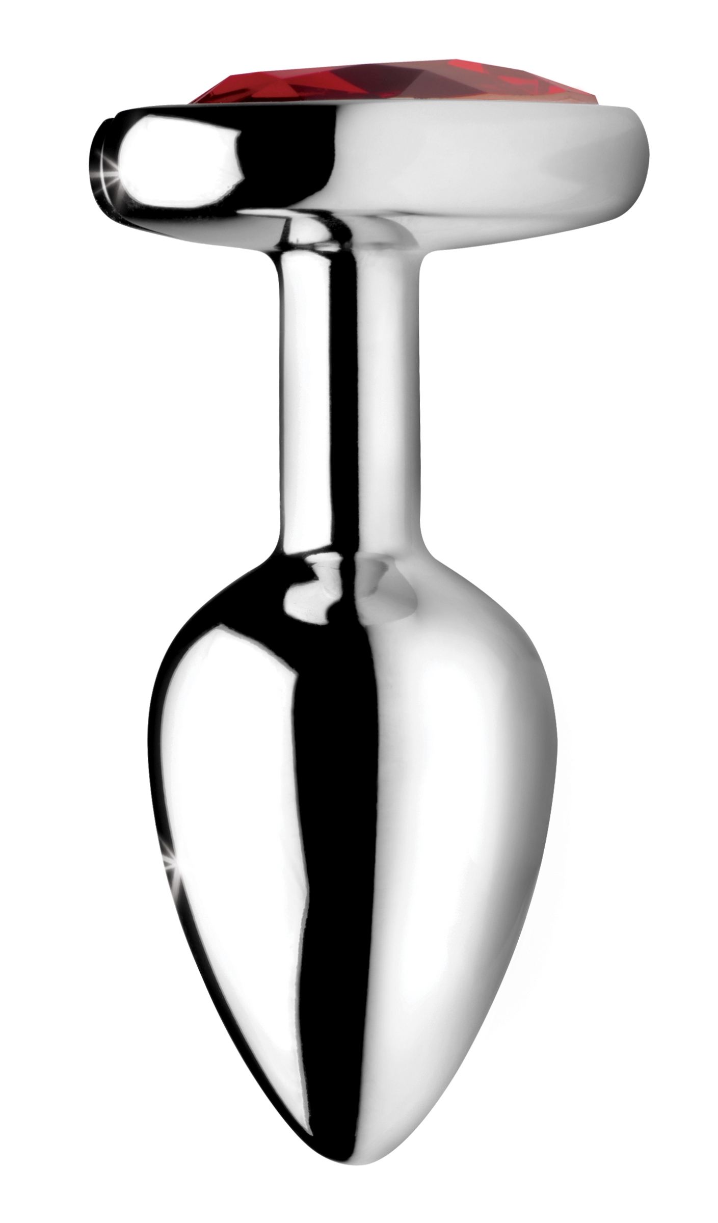 Spark your desire for decadent anal play with this beautiful Booty Sparks plug! Featuring a smooth metal finish in lightweight aluminum, it features a sweet heart shaped gem in a deep crimson red. The slim shaft will keep it from slipping out of place even during vigorous play. You will want to show off your new sparkling booty as you bend over and tease your lover. The nickel free aluminum alloy is nicely weighted and temperature sensitive for the perfect amount of sensation. When play is over, the non-porous material will clean easily without harboring any harmful bacteria. Make that booty sparkle!