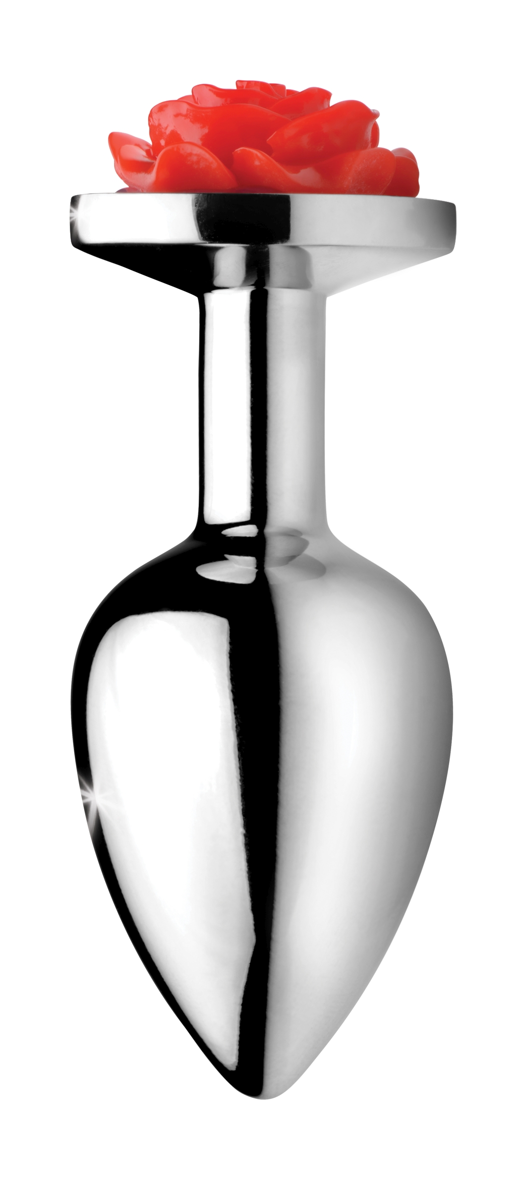 Beautify your booty with this shining red rose! Featuring a smooth metal finish in lightweight aluminum, it features a lovely flower at the end which will flash as you bend over and tease your lover. The slim shaft will keep it from slipping out of place even during vigorous play. The nickel free aluminum alloy is nicely weighted and temperature sensitive for the perfect amount of sensation. When play is over, the non-porous material will clean easily without harboring any harmful bacteria. Make that booty bloom!