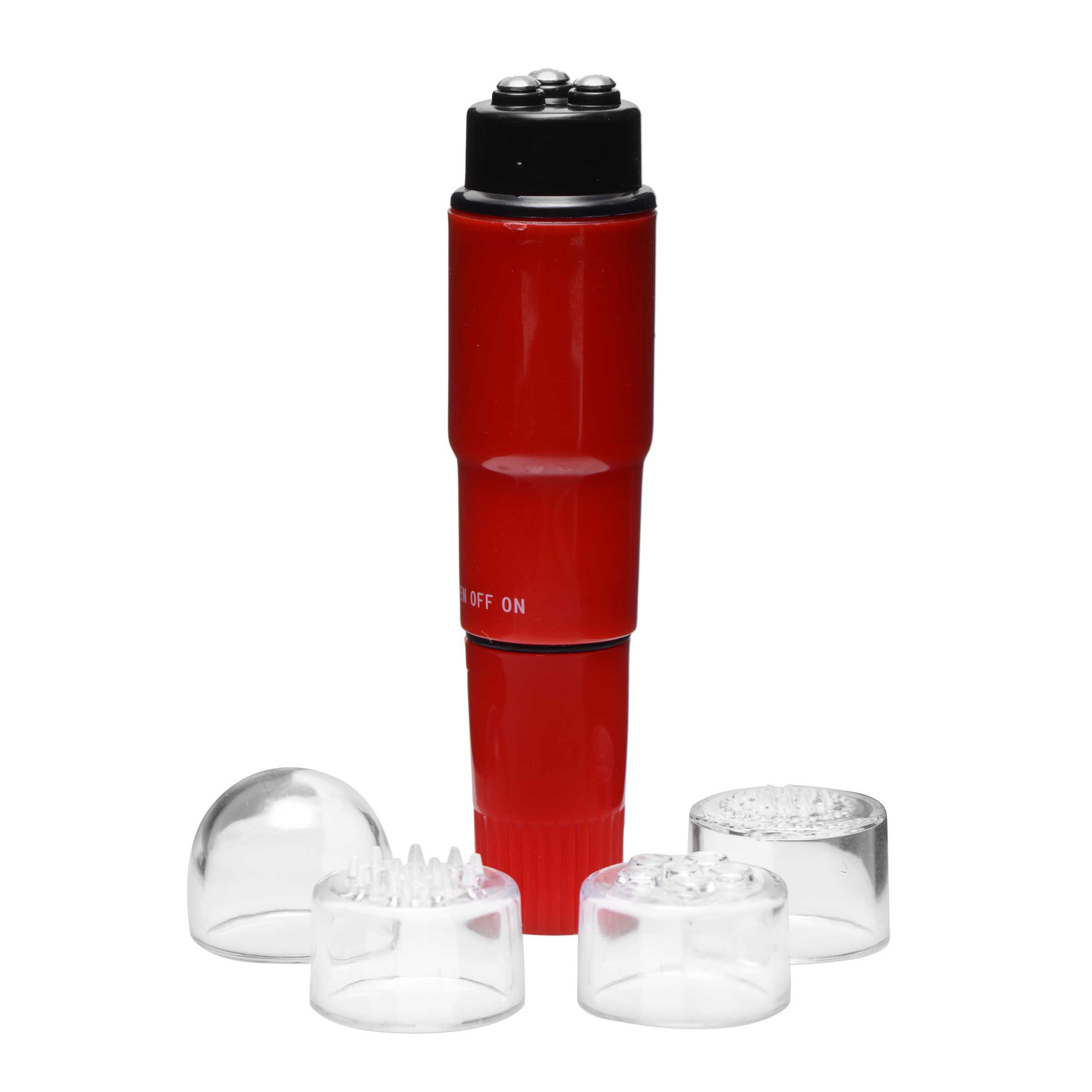 This Trinity Rocket Vibe, at just 4 inches long, is small enough to fit in your pocket but wonderful enough to bring you hours of pleasure with just 1 AA battery. Use one of the four attachments to create a variety of stimulation or go without one and get a completely different feel from the three steel balls.