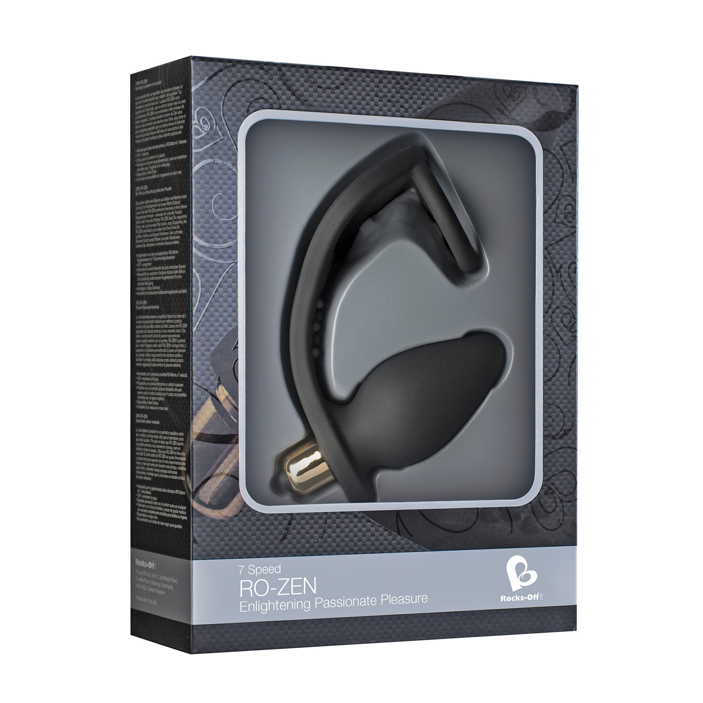 RO-Zens strong tight double ring will support and hold you giving a larger, harder and more prolonged erection whilst its slender discreet shaft sends ripples of blissful vibrations to your bottom, while you reach the ultimate erotic state of pleasure. Measurements: 4.72 inches by 4.92 by 1.77 Material: Silicone, metal, ABS Color: Black Note: Requires 1 N battery, included