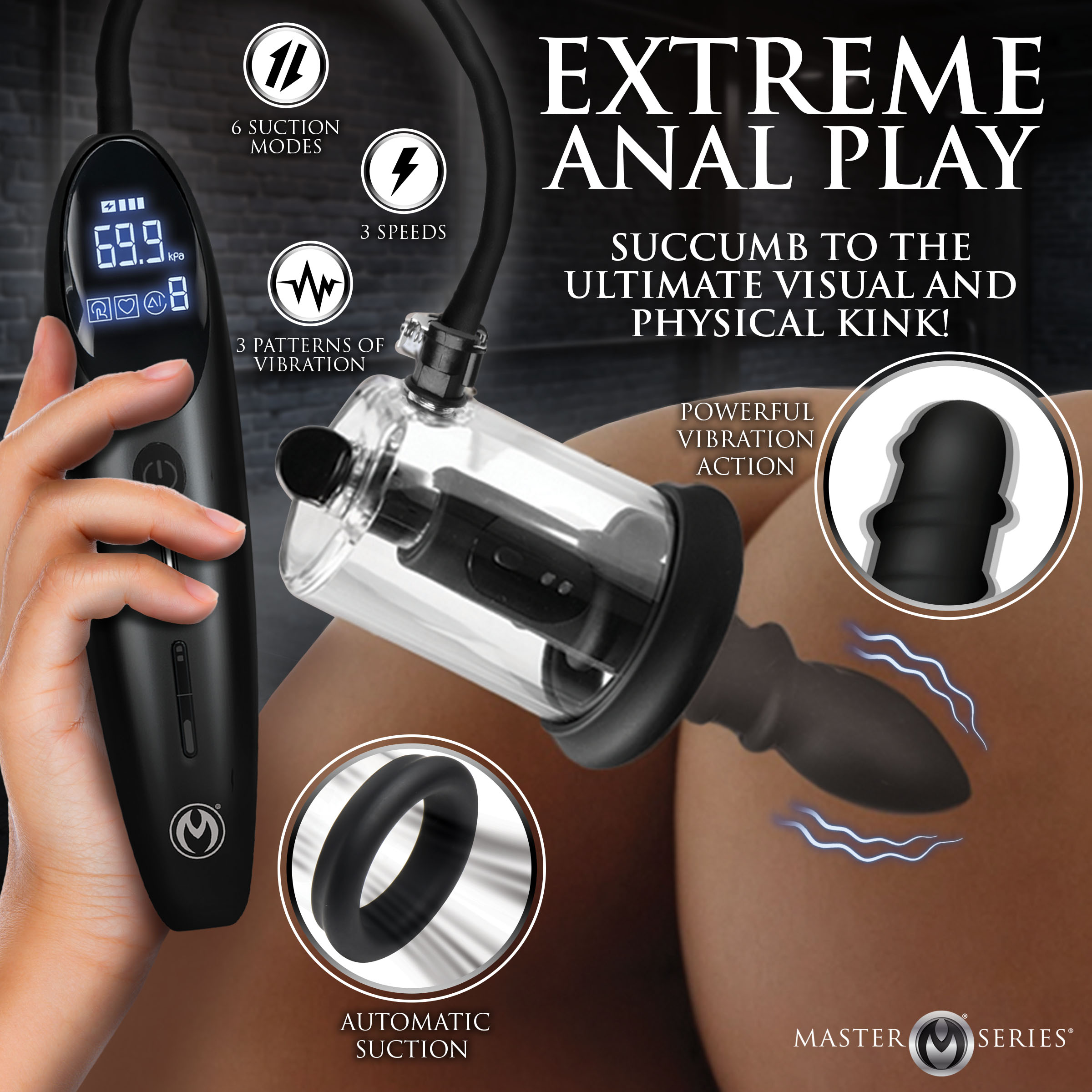 Introducing the ultimate device for intense anal stimulation. Experience the perfect combination of suction, thrusting, and vibration with 6 automatic suction modes and 3 speeds plus 3 patterns of vibration. You get to choose between two premium silicone rods, each featuring a spiraled ridge along the shaft. One rod has a rounded tip while the other has a pointed, bulb tip. Designed for unisex use, this toy is especially great for prostate massage. The rosebud suction device ensures it maintains its seal and suction even with the tubing removed. Enjoy easy control with an ergonomic controller that remembers your favorite setting. Fully waterproof (rated IPX8) and USB rechargeable for your convenience. Measurements : Cylinder: 3.4 inches in depth, 1.9 inches inner diameter Conical plug: 4.7 inches insertable length, 1.2 inches widest diameter Spiral plug: 4.3 inches insertable length, 1.1 inches widest diameter Hose length: 18.1 inches Materials : Silicone, plastic, plastic Color : Black, clear Note : Use only with water-based lubricants for best results.