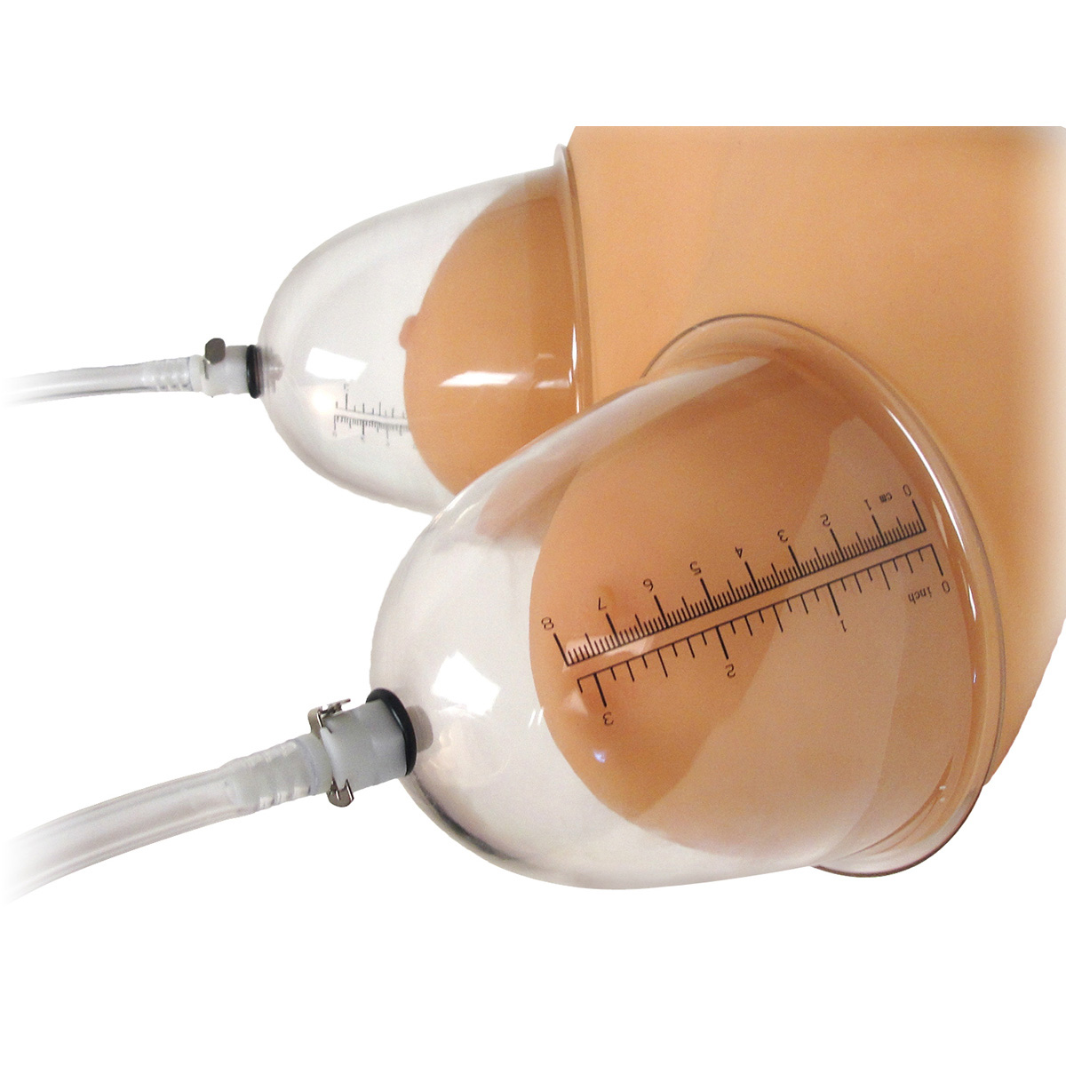 The Size Matters Breast Enhancement System is exactly what you need to give yourself fuller breasts. Each cylinder is made of industrial strength crystal clear acrylic and will fit comfortably over your breasts. With this system you can enhance your breasts to a nice full size in no time Just fit the cylinders over each breast and start pumping. Use the gauge to help get you to your full potential Kit contains premium handle pump with gauge, split connector hose, and 2 air lock breast cylinders. Measurements: Cylinders are 4.5 inches inner diameter and 4.25 inches deep, Material: Acrylic, PVC, ABS, Metal