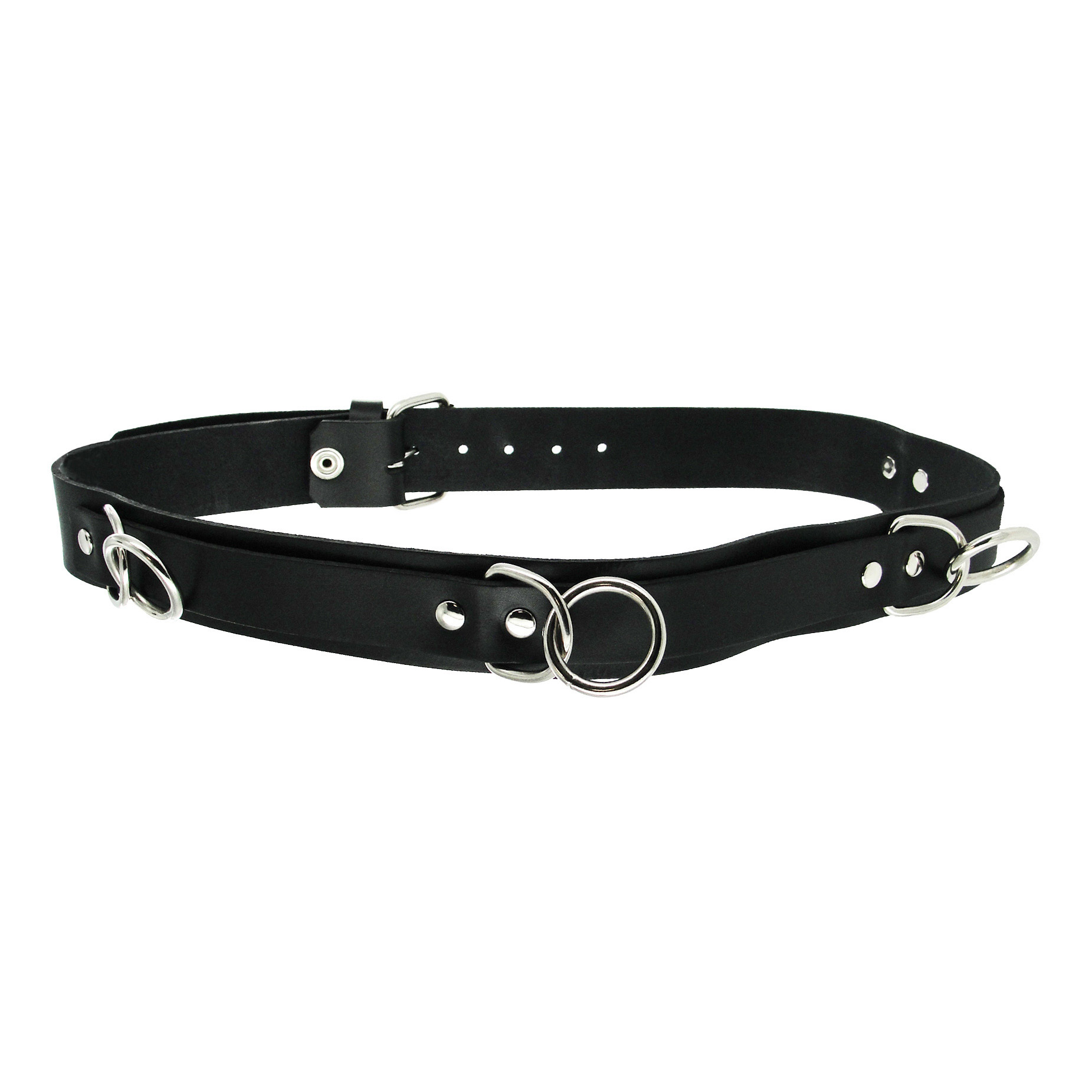This versatile punk style bondage belt gives you endless possibilities for attaching your favorite gear and restraining your partner. Use any of the four heavy-duty D-rings to attach cuffs, rope, suspension equipment, anything you can imagine The thick, high-quality leather looks great and is made to last, and your lover will look hot while they are all tied up Measurements: Fits waists from 31 to 38 inches around, Belt is 1.38 inches wide, Material: Leather, Metal, Color: Black