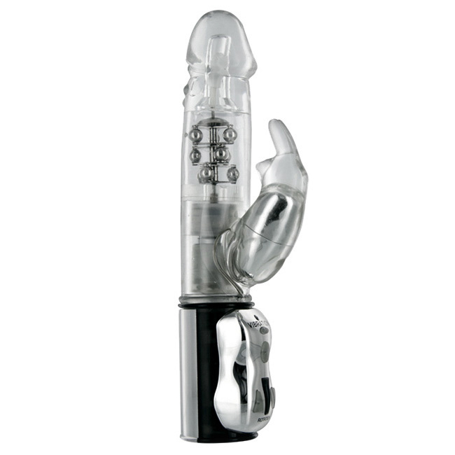 For the ultimate rabbit experience try the Sugar Rabbit Vibe. It has a clear 4.5 inch insertable shaft containing rotating metal beads that can provide intense stimulation. There are 6 different levels of rotation speed. The 7 function (includes speed, pulsation and escalation) rabbit wraps its ears tight around your clit for incredible clitoral stimulation.