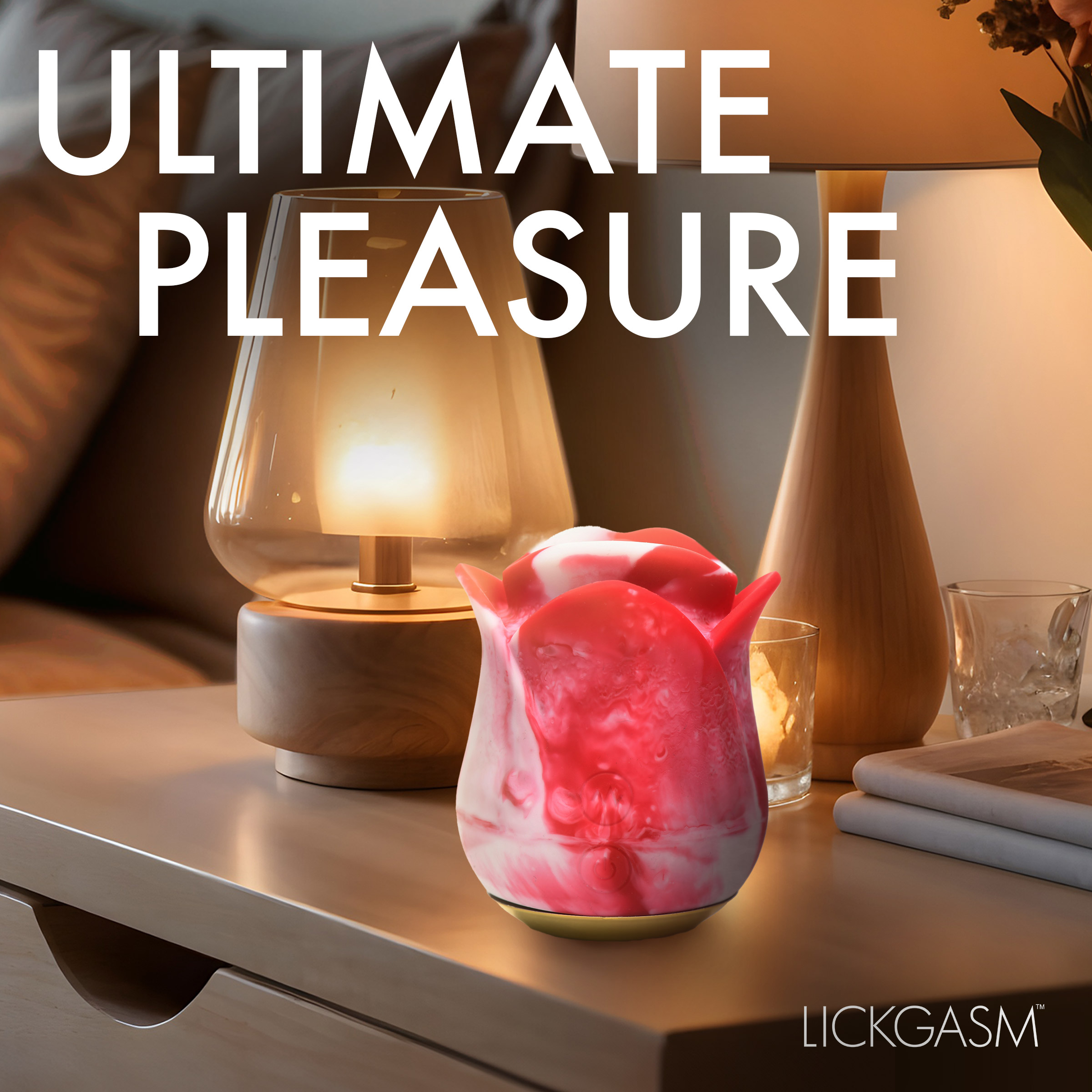 This silicone rose is about to become your new best friend, bringing an air of whimsical charm into your intimate relationships and self-love sessions. This gentle flower indulges you in thrilling clitoral stimulation, offering a bouquet of vibrations and scintillating kisses. Playfully navigating between three speeds and seven rhythmic patterns, it creates a symphony of pleasure of vibrating kisses for an incredible orgasm. Delightfully compact and rated IPX6 waterproof, it fits perfectly into solo or shared erotic ventures in the shower, but should not be submerged underwater. The silky smooth, premium silicone is made out of phthalate-free, body-safe material so you can have stress-free sex anytime and anywhere! Get your hands on this everblooming rose and plant the seeds for a satisfied and orgasmic life today! She's been asking for more attention, but you've only got so many hands. You decide to surprise her this time. As she's on your back, and one hand is inside her, you turn on the licking rose and rub it against the excess lube on your palm. As it touches her clit she gasps and looks up at you, surprised and pleased. Those eyes start to close, heavy-lidded and surrendering to sublime pleasure. She writhes against your hand, riding it as the rose licks and buzzes her clit. Her hands caress her breasts, and she sticks a few fingers in her mouth, enjoying the oral sensation. She's writhing faster now, completely lost to her own desire. You are merely the means to her satisfaction. She grinds, writhes, moans, and finally, climaxes with a shuddering gasp and a laugh of surprise. She touches your hand, the most that she can do to express her gratitude as she sinks into euphoria. Measurements : Overall length: 2.9 inches. Overall width: 2.2 inches. Materials : Silicone, ABS plastic Color : Red and white Note :Use only with water-based lubricants for best results. Key Features: Seductive Kissing: Enjoy 3 kissing speeds! Exciting Vibrations!: Experience all 3 speeds and 7 patterns of vibration! Silky Silicone: Quality, premium grade silicone that is silky smooth, phthalate-free, and body-safe. Waterproof and Rechargeable: Rated IPX6 waterproof it can be taken in showers but not submerged. Recharge via USB cable provided.