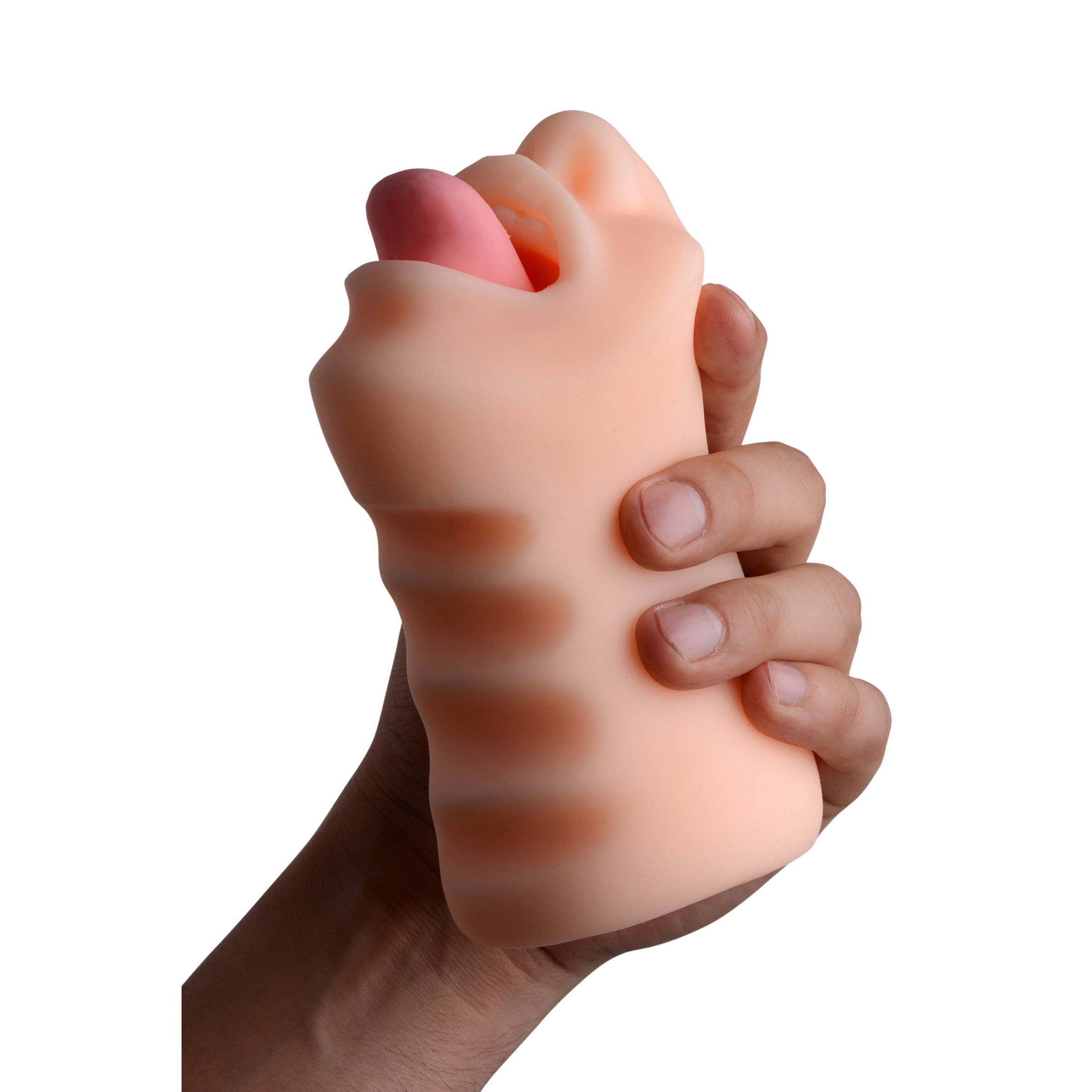 Sydney will provide you with oral sex whenever and wherever you want it! This travel-friendly blowjob sleeve is shaped like a pretty little mouth, inside and out! Lifelike lips and tongue beckon you for a pleasure experience that goes beyond human capabilities. The ultra-realistic inner tunnel is textured for maximum ecstasy, with soft teeth, a pliable tongue, and a ribbed roof of mouth. Just wait until you feel the tightness as you thrust deeper into this stretchy stroker! The closed end provides powerful suction as you enjoy the wetness from a silicone or water-based lube. Turn inside out to clean with mild soap and warm water.