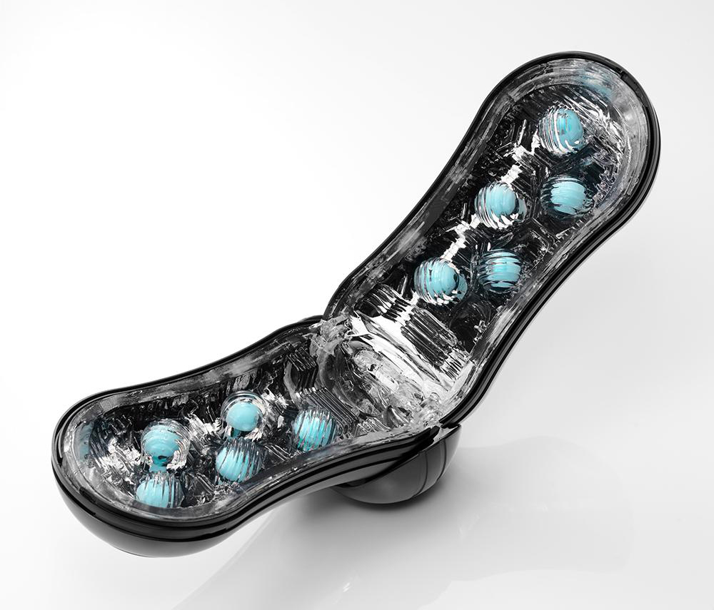 Get swept up in the rush of bounding blue orbs and angular ridges found inside the Strong Blue Rush Tenga Flip! The stimulation orbs are suspended in the softness of elastomer and provide a solid round texture for your member to rub against during use. The hourglass shape and ergonomic design makes this masturbation device easy to use – the outer pressure pads allow for direct control so you can find the prefect squeeze and sensation, and the unique flip open function makes application of lubricant and cleaning easier than ever. Materials: ABS, PC, Elastomer Dimensions: Width 3.39 inches, Diameter 2.8, Height 7 inches. Insertion length 5.52 inches, insertion width 1.38 inches. Weight: approximately 0.93 lbs Color: Black and blue Included: 2 sample lotion packs and detailed instructions