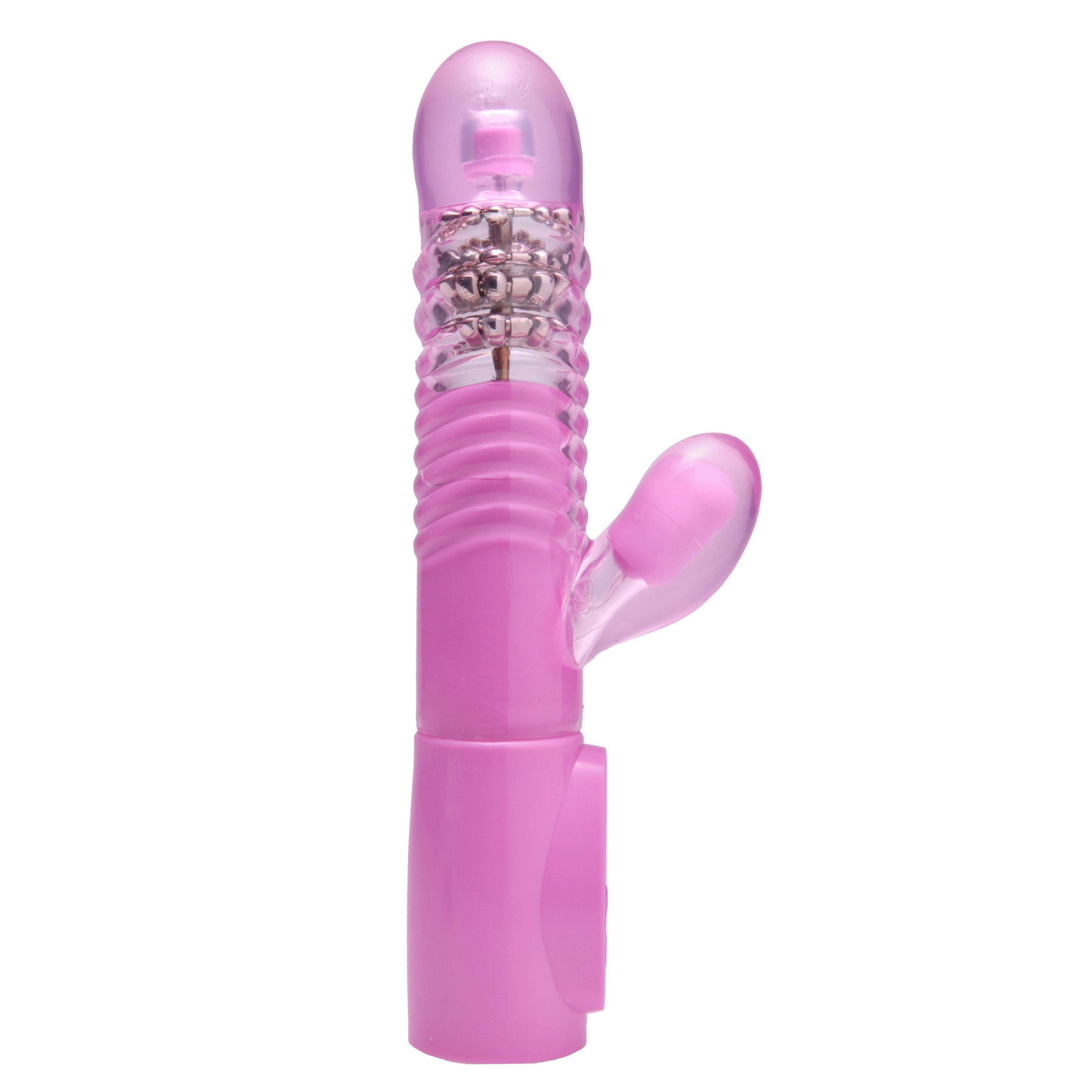 This thrusting powerhouse has 6 modes of vibration and 6 pulse patterns to thrill you, while the large, powerful clitoral stimulator sends you over the edge in orgasmic bliss! The thick textured shaft contains rows of metal beads that stimulate you as the head thrusts up and down, all while delivering powerful vibration. The integrated control panel at the front allows you to control the speeds with one touch, so you can focus all your attention on the pleasures at hand...