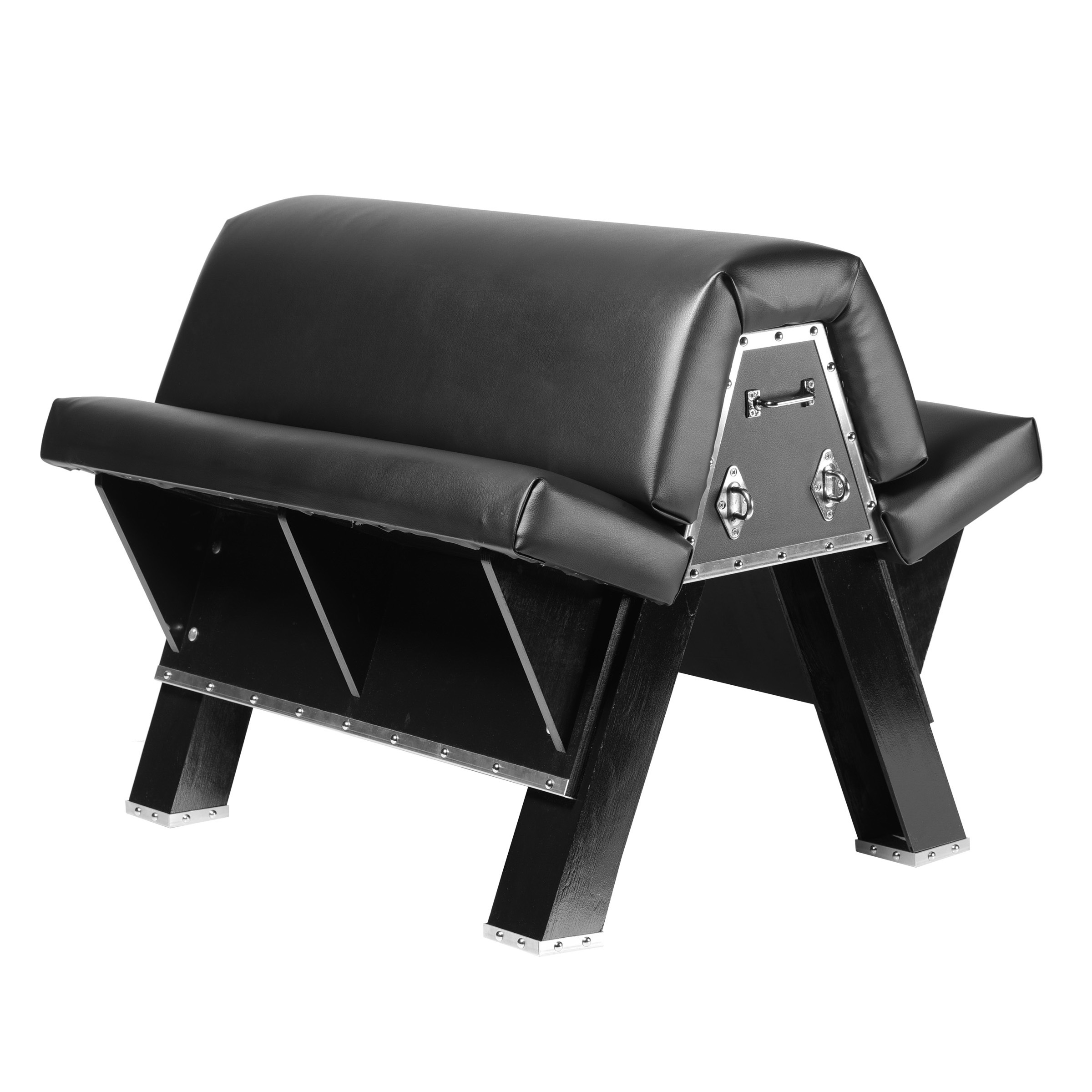 Note: Kit contains black wood bondage horse, 4 snap hooks, 1 silicone gag, 2 65 inch straps, 2 40 inch straps, and 4 padded cuffs