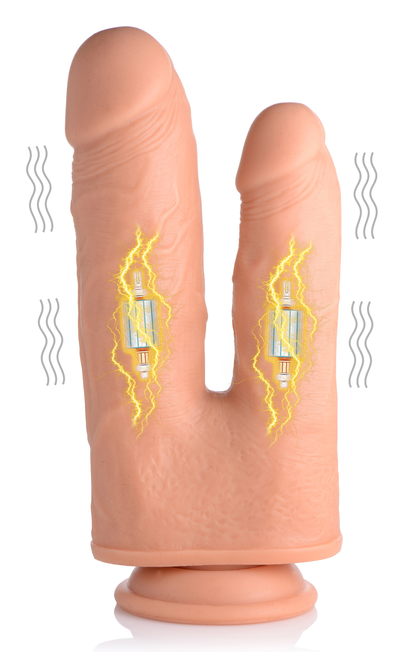 Take a double shot of dong with this turbo powered dildo! Crafted with premium ingredients and packed with features for a gratifying combination of fill, vibration, and rotation. This Double Shot is made for lovers of double penetration - enjoy a big dong and small dong in both your holes at once, with ease! Enjoy 7 buzzing patterns and 3 shaft rotation speeds at your own pace - flip through each function to match your sexual rhythm with the included wireless controller and turn on the lightning strong turbo mode to elevate your climax to new heights! The liquid silicone material is super soft and shaped for a lifelike feel. The ultra-realistic design is perfectly scultped for your pleasure, while the sturdy suction cup base holds this dong upright so you can ride every inch in comfort. The strong suction cup base also makes this double dong compatible with most strap-on harnesses so you can equip this double-threat as your own buzzing beast. Curve Toys is known for their ultra-realistic bio-skin formula used to create the best dildos and adult toys in the world. They manufacture their adult replica products with USA materials that are body-friendly, phthalate-free, and top-grade. Their proprietary blend of bio-skin is mixed in-house, making them a leader in sexual health. All products are inspected for superior functionality so that they represent the value, quality, and innovation from the factory to the bedroom. Staffed by experts with over 60 cumulative years in the adult manufacturing, Curve Toys is the perfect combination of passion, creativity and experience; in short, we know pleasure. Measurements : Overall length 8.5 inches, widest insertable diameter 3.6 inches, narrowest insertable diameter 3.3 inches, insertable length 7.4 inches Short Dildo Measurements: Length 6.5 inches, width 1.5 inches; insertable 4 inches Tall Dildo Measurements: Length: 7.6 inches, width 1.8 inches, insertable 5.4 inches Materials : Silicone Color : Light