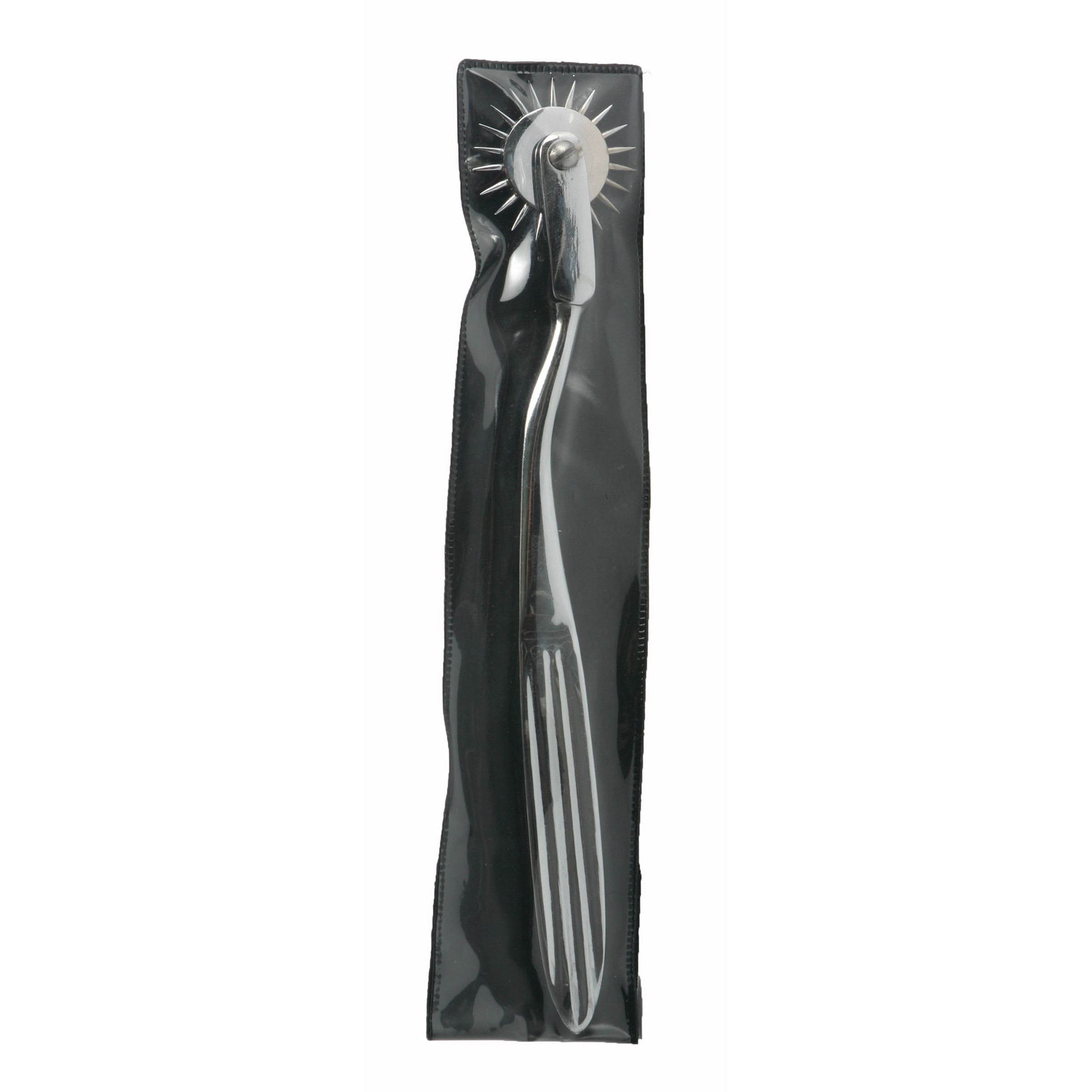 Test the limits of sensitivity play with this classic Wartenburg wheel. Run this premium spiked wheel across the skin and other highly treasured areas for an exciting prickle of pleasure. Made of stainless steel and deviously designed with a row of evenly spaced sharp pins that turn smoothly as it rolls across the flesh, it is ideally designed for intense, exquisite pleasure. Take it to the next level with a little temperature play...the slick material can be warmed or cooled for an extra spike of sensation.